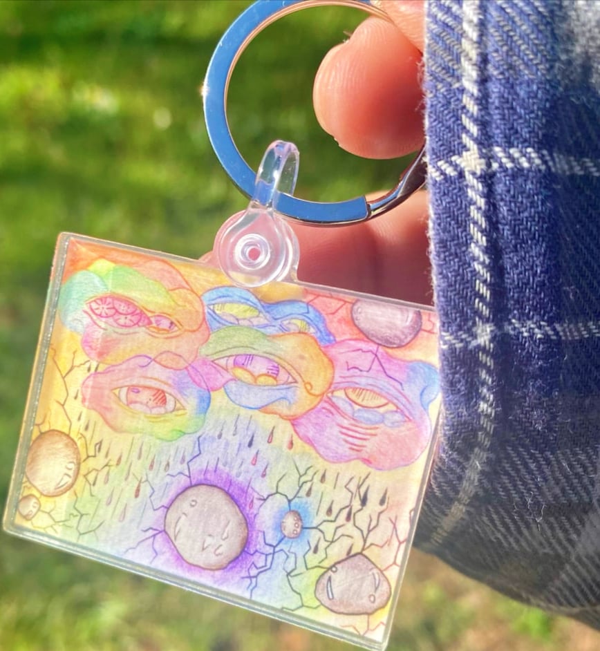 2.5” or 3” double sided acrylic keychain/accessory; can be used on keys, as a bag charm, on water bottles, or even style your clothing by attaching to your belt loop! “Single sided” indicates that the artwork is on one side while “double sided “ indicates that the artwork is on both sides! <3