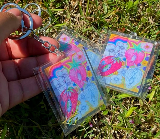 2.5” or 3” double sided acrylic keychain/accessory; can be used on keys, as a bag charm, on water bottles, or even style your clothing by attaching to your belt loop! “Single sided” indicates that the artwork is on one side while “double sided “ indicates that the artwork is on both sides! <3